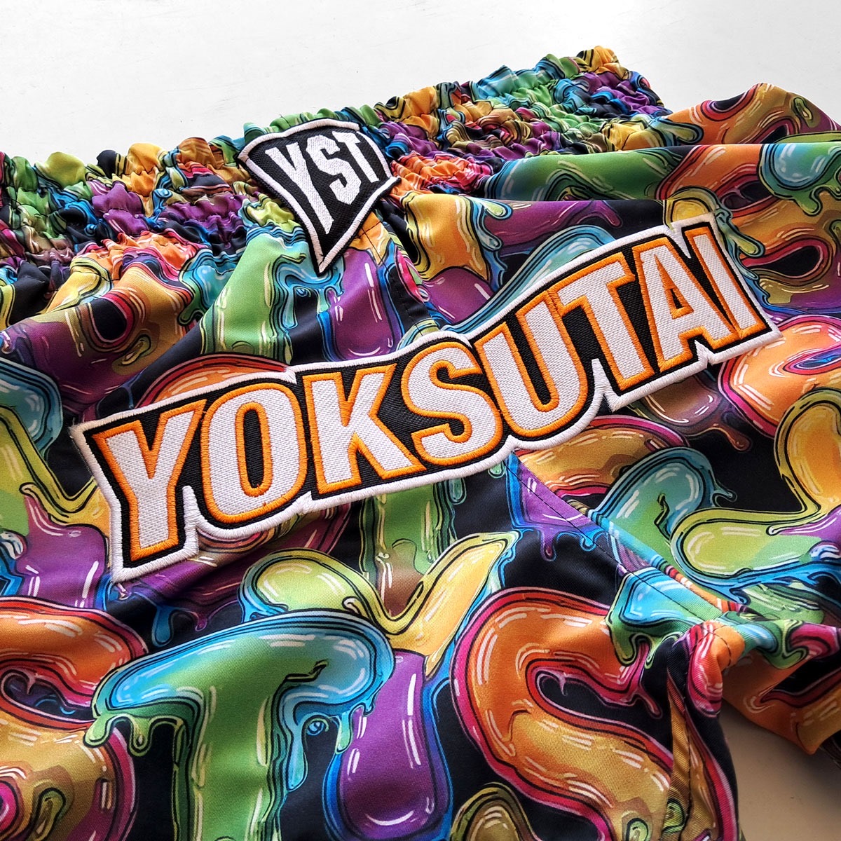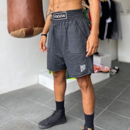 Short Muaythai com estampa Donut e bordado Yoksutai centralizado.