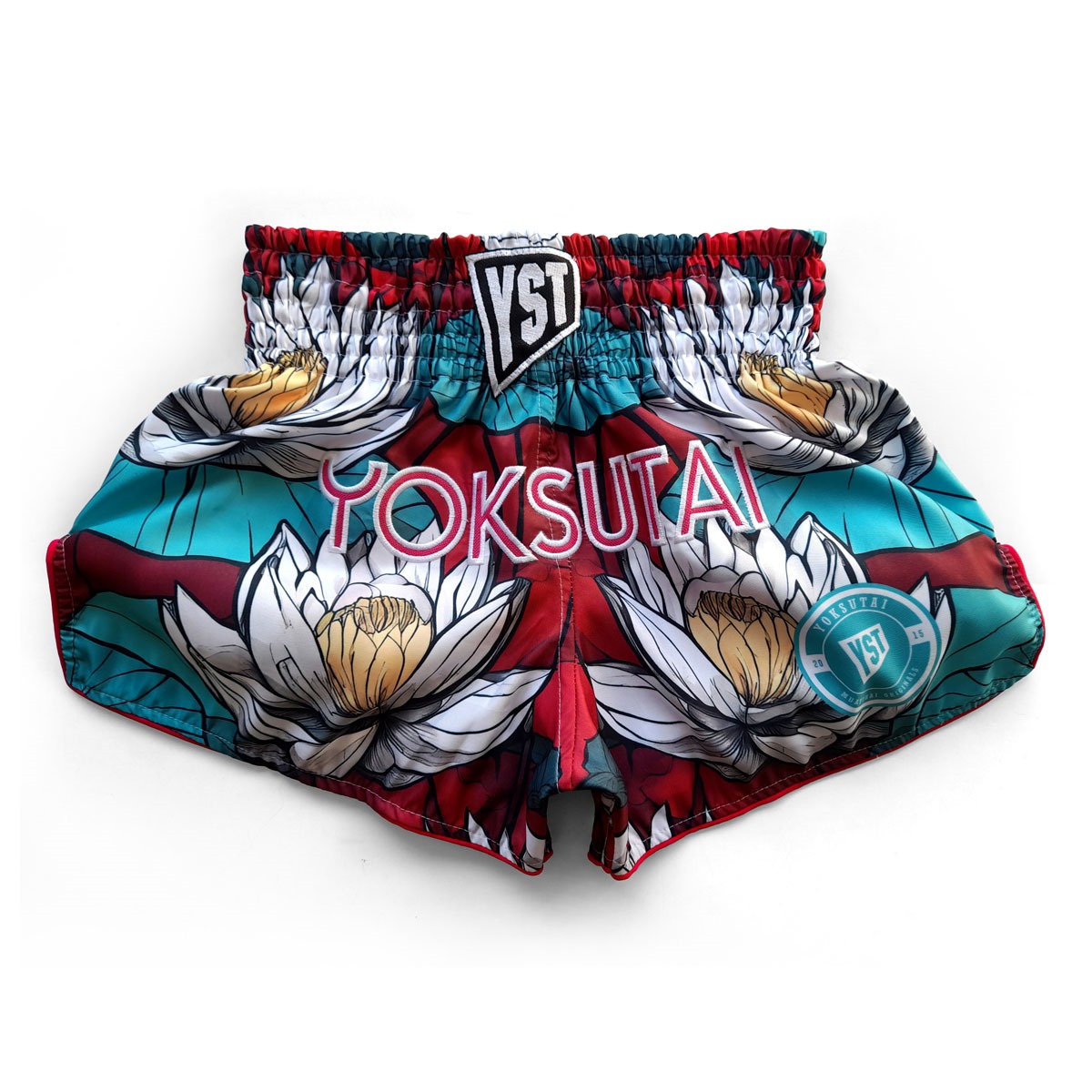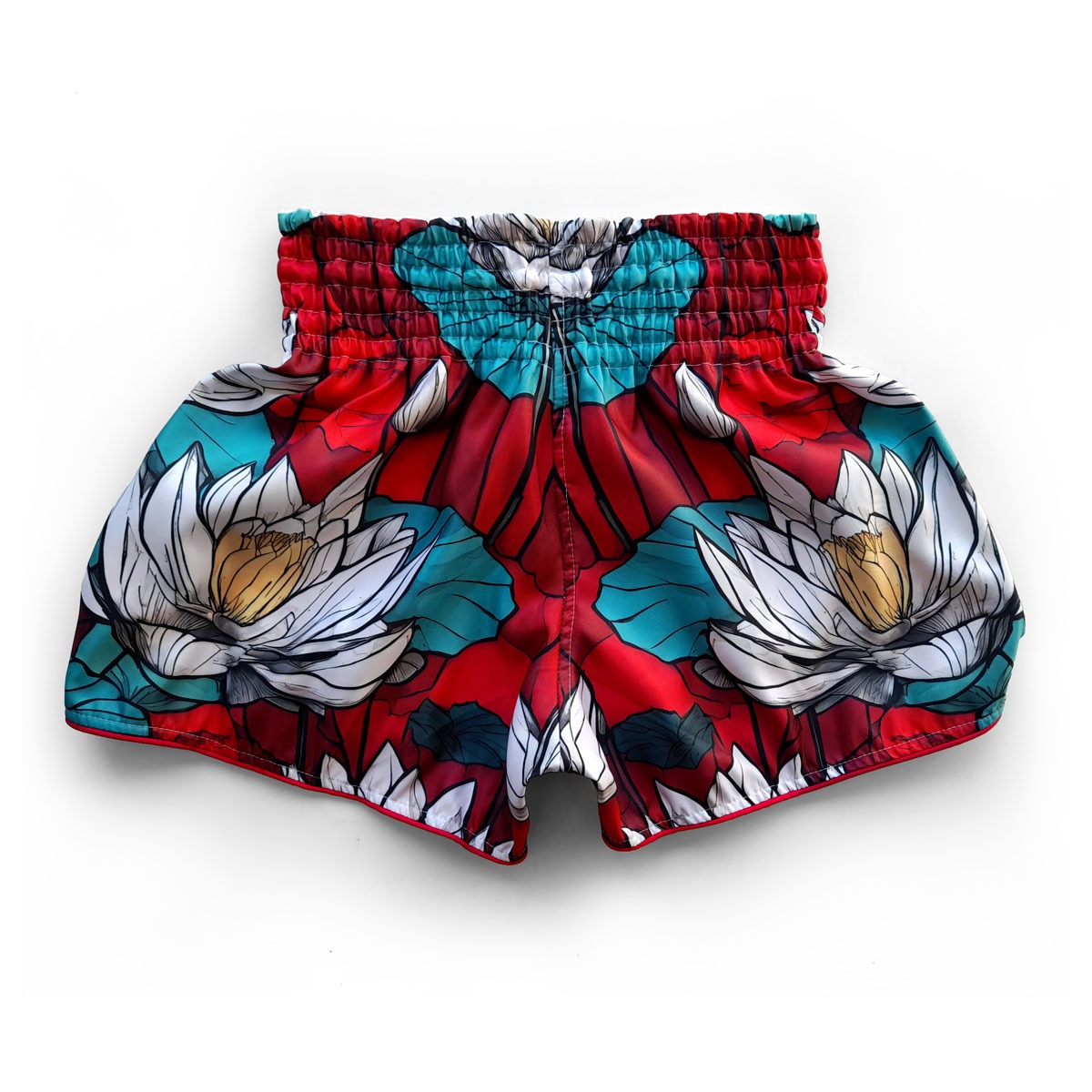Short de Muaythai em tecido 100% poliester com estampa de lótus.