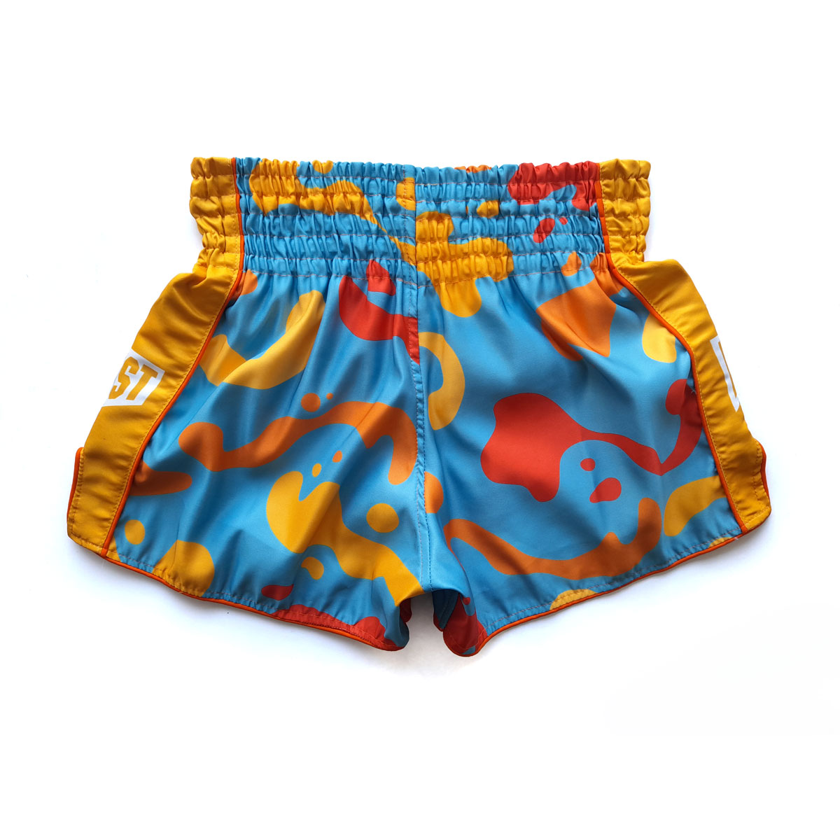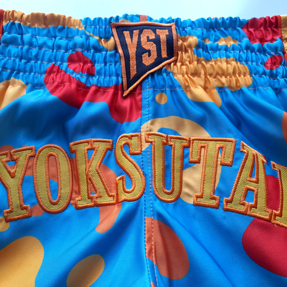 Short de muaythai com estampa Líquido e bordado Yoksutai em tecido 100% poliester.